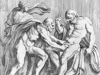 Do espaço, antes de tudo, porque o pobre Urano, sob o efeito da dor atroz causada pela mutilação, vai se esconder “lá em cima”, de forma que, no final desse recolhimento, ele se encontra meio que colado no teto e liberando, com isso, o espaço que separa o céu da terra. E do tempo, por uma razão infinitamente mais profunda, que vem a ser uma das chaves de toda a mitologia: são as crianças — os Titãs, no caso — que graças ao espaço aberto vão poder, enfim, sair de dentro da terra. Isso quer dizer que é o futuro, até então obstruído pela pressão de Urano sobre Gaia, que se abre. As novas gerações começam, a partir daí, a habitar o presente, e as crianças a simbolizar, ao mesmo tempo, a vida e a história. Mas tanto a vida quanto a história, que, pela primeira vez, se encarnam nesses Titãs que conseguem enfim deixar a sombra e a terra, igualmente geram o movimento, o desequilíbrio e, por isso mesmo, a incessante possibilidade que se abre da desordem. Com as novas gerações, o que entra em cena é mais a dinâmica do que a estabilidade, o caótico do que o cósmico. Uma coisa, pelo menos, passa de qualquer forma a estar bastante clara: os pais precisam colocar as barbas de molho com relação aos filhos! E Cronos mais do que qualquer outro: foi quem mutilou o pai, Urano, e, consequentemente, o primeiro a entender o quanto os filhos podem ameaçar a ordem, o poder estabelecido e que se acha estar sob controle. Ou, dito de outra forma, é preciso desconfiar do tempo, fator de vida, é claro, mas também a dimensão por excelência de todas as desordens, de todas as complicações e desequilíbrios que virão. Cronos toma consciência desse fato indiscutível: a história é cheia de perigos, e para quem quiser manter o que adquiriu, garantir seu poder, mais vale aboli-la, para que nada mude.