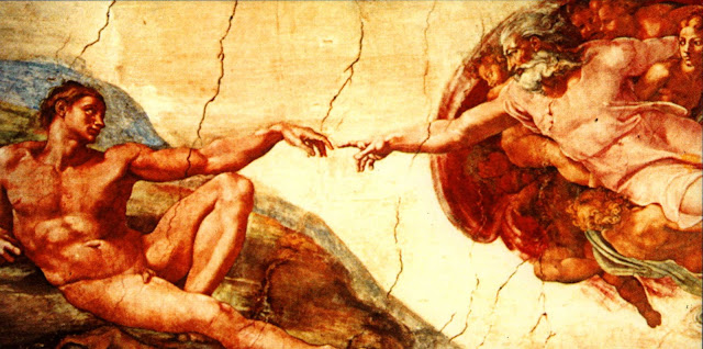 De todas as representações de Deus produzidas no Ocidente, a melhor, a meu ver, não foi escrita, foi pintada por um exímio filósofo no manuseio de pincéis, no teto da Capela Sistina, no interior da sede da Igreja de Roma. Seu nome: Michelangelo. Quem não o conhece ou nunca vislumbrou a seção intitulada “A criação de Adão”, gravada no teto da Capela onde são eleitos os papas? Procure rever a imagem, caro leitor, pensando em Deus como metáfora do Criador para encerrarmos com esse conceito pictórico o debate sobre Deus Existência, razão deste primeiro capítulo. Diga então se Deus não lhe parece ansioso para passar logo o comando do Universo a um homem desolado por representar a humanidade, um Adão bem-dotado de músculos e maldotado quanto ao apêndice que representa a potência masculina, pênis diminuto a representar nossa impotência.